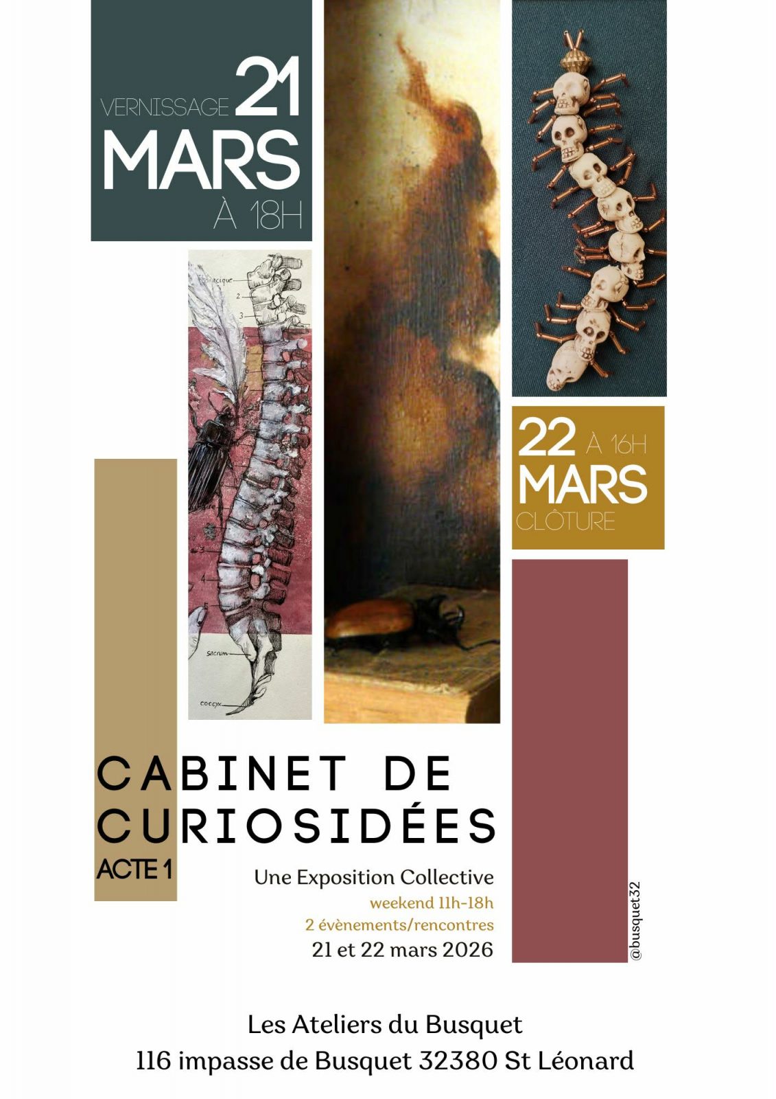 Les Ateliers du Busquet sont heureux de vous inviter pour cette exposition artistique inédite. Trois artistes, trois univers qui se répondent pour une exposition collective le week-end du 21 et 22 mars.