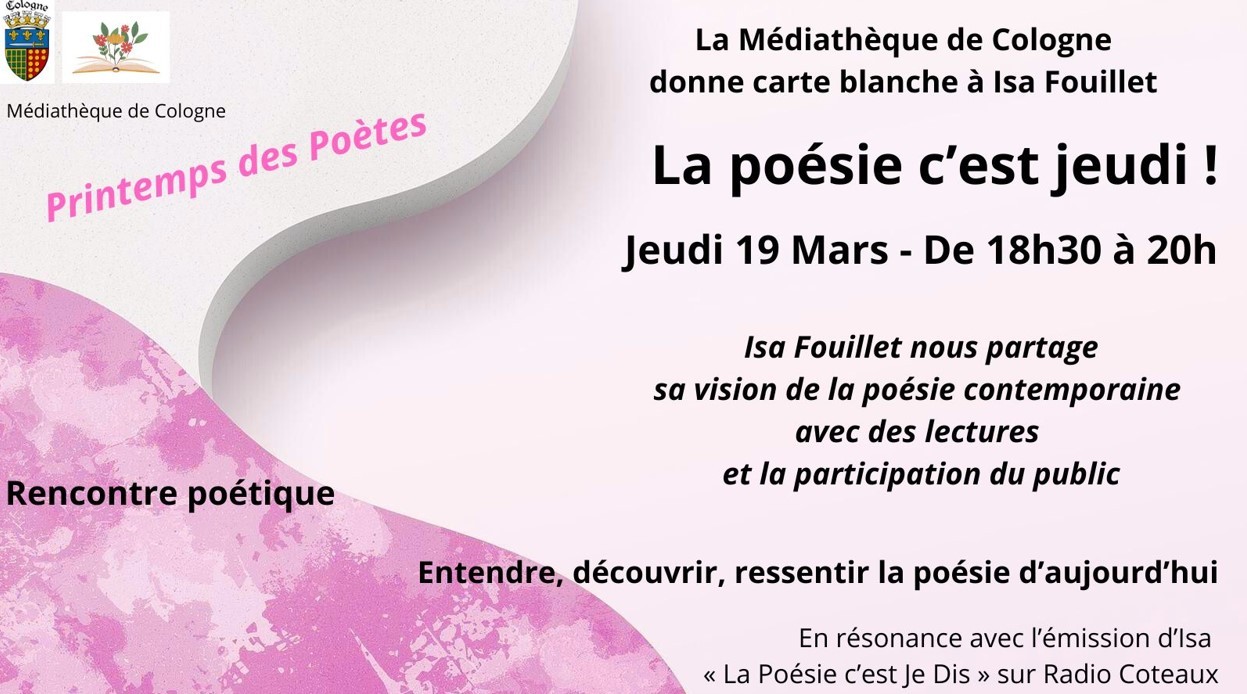 La médiathèque de Cologne propose un rendez-vous poésie de 18h30 à 20h avec Isa Fouillet