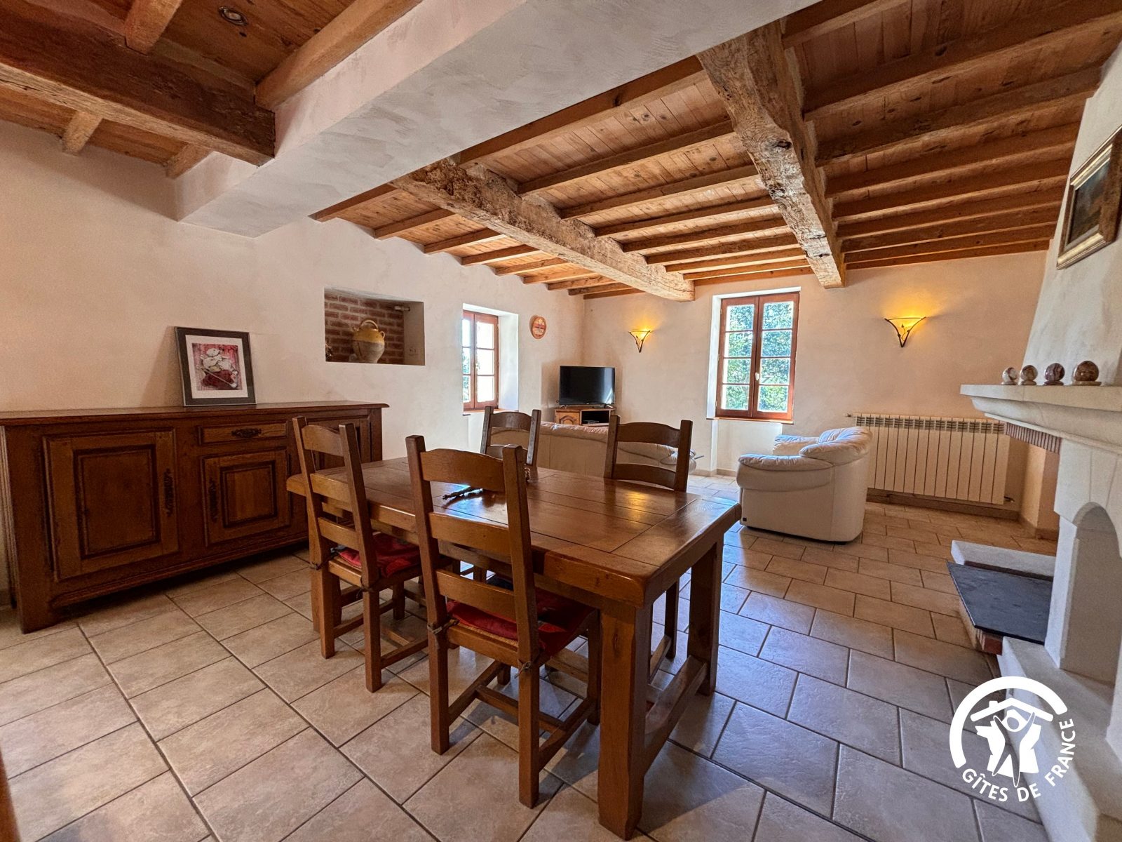 Entrée, salon, cuisine ouverte entièrement équipée, 2 chambres (2 lits 140, 1 lit 90), salle de bain (baignoire et douche), wc indépendant, chauffage au fioul.