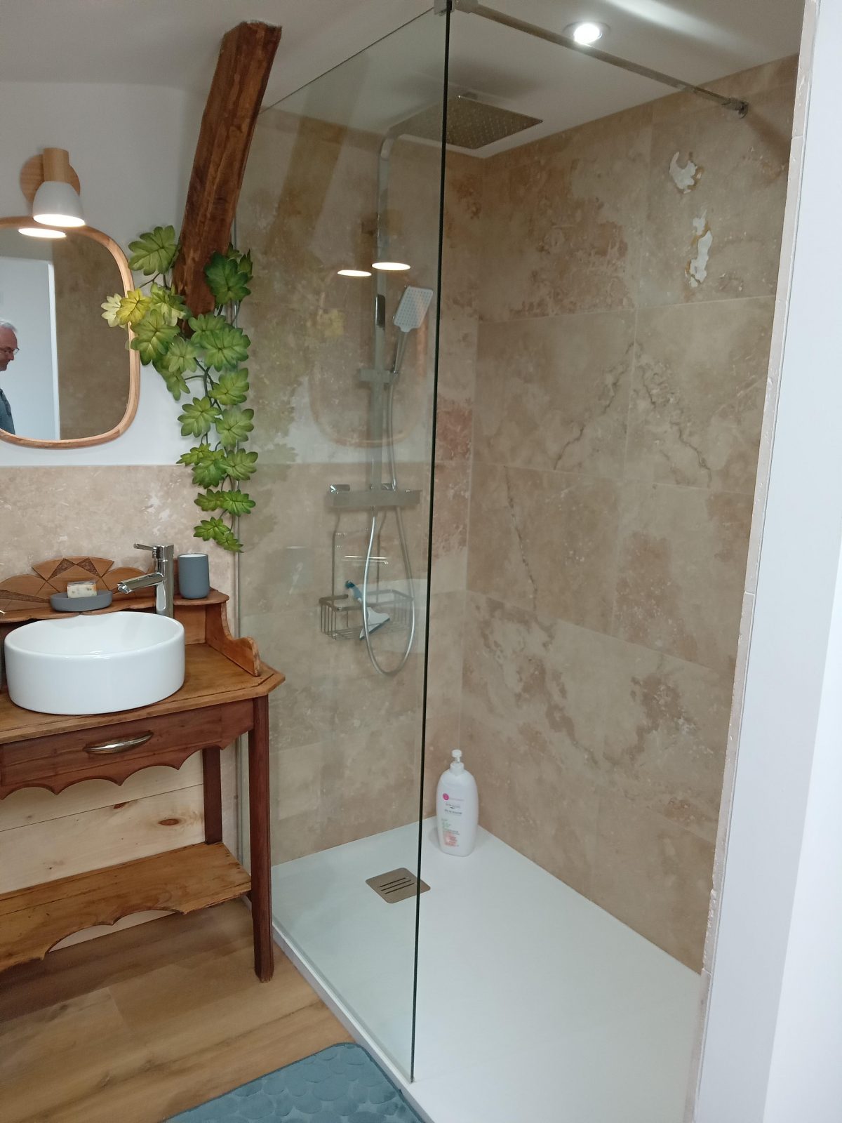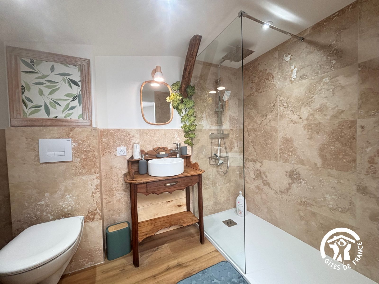 Une salle d'eau avec douche à l'italienne et wc.