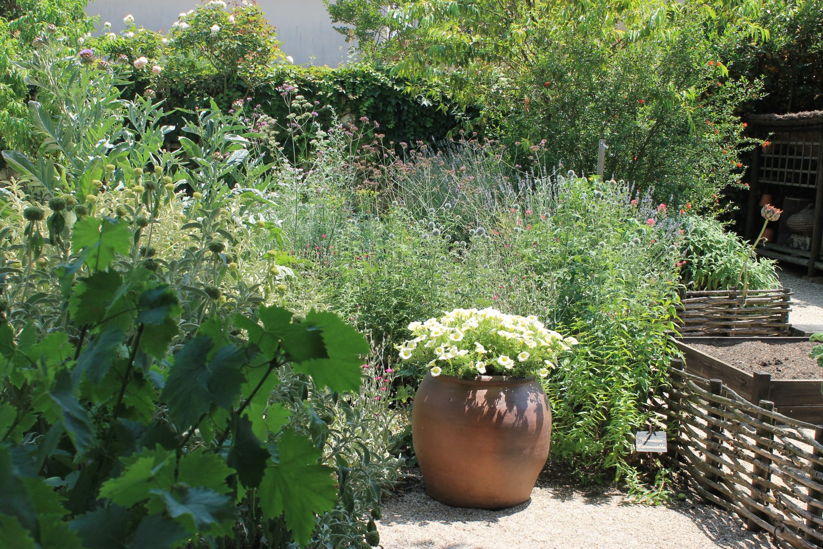 Palissades de châtaigniers et plessis protègent les cultures potagères, aromatiques, condimentaires et médicinales.